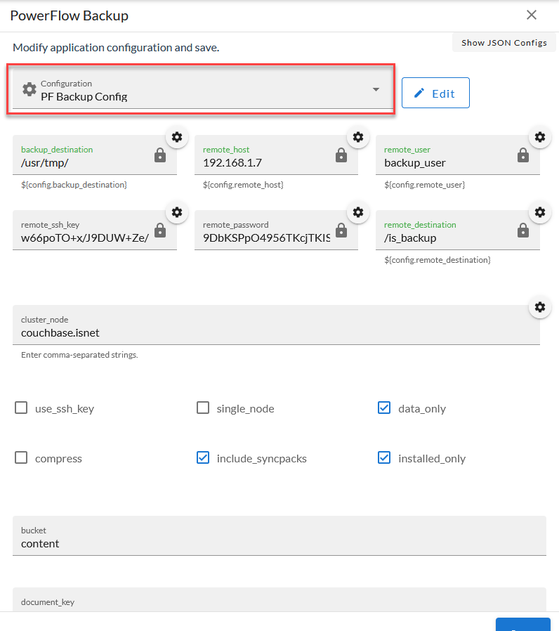 • Configuration. Select the same configuration object you aligned with the "PowerFlow Backup" application. Required.