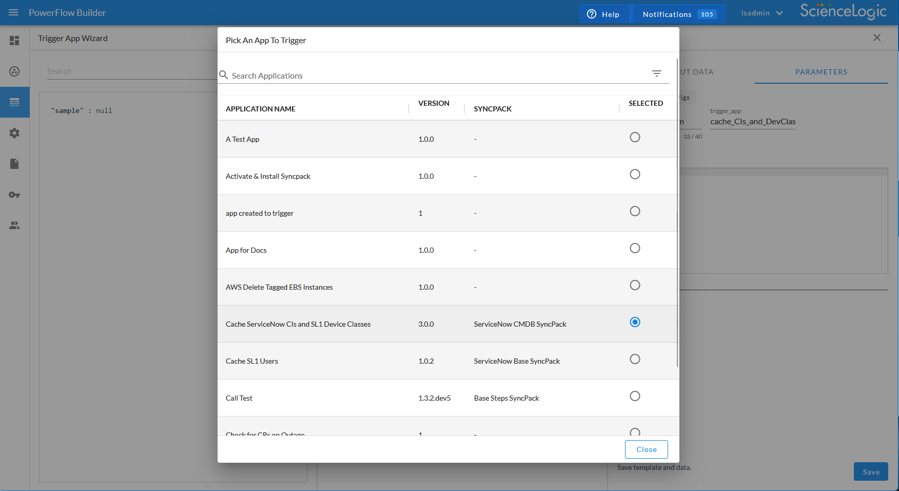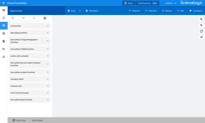 PowerFlow and SyncPacks content not created by ScienceLogic is not supported by ScienceLogic. This includes custom steps, PowerFlow applications, and SyncPacks.