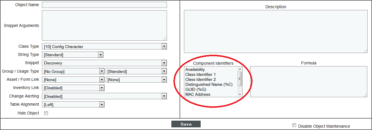 For Dynamic Applications that have the Component Mapping checkbox selected in the Dynamic Applications Properties Editor page, the Component Identifiers field is displayed in the Collection Objects page: