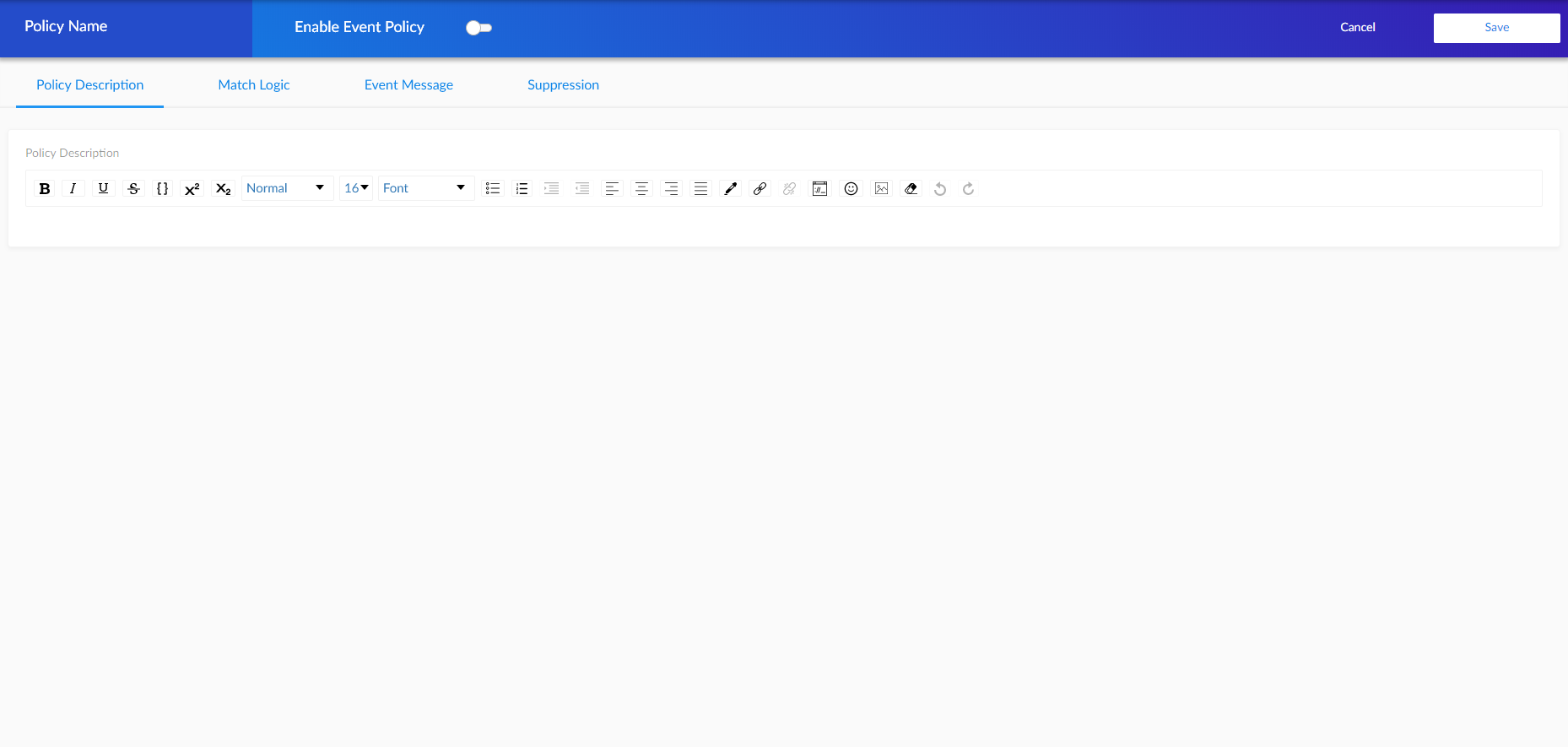 2. In the Event Policies page, click the Create Event Policy button. The Event Policy Editor page appears: