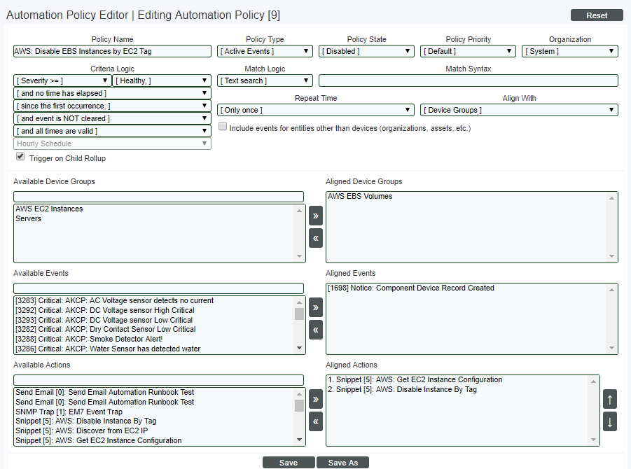 - Policy State. Specifies whether the automation policy can be executed (Enabled) or cannot be executed (Disabled).
