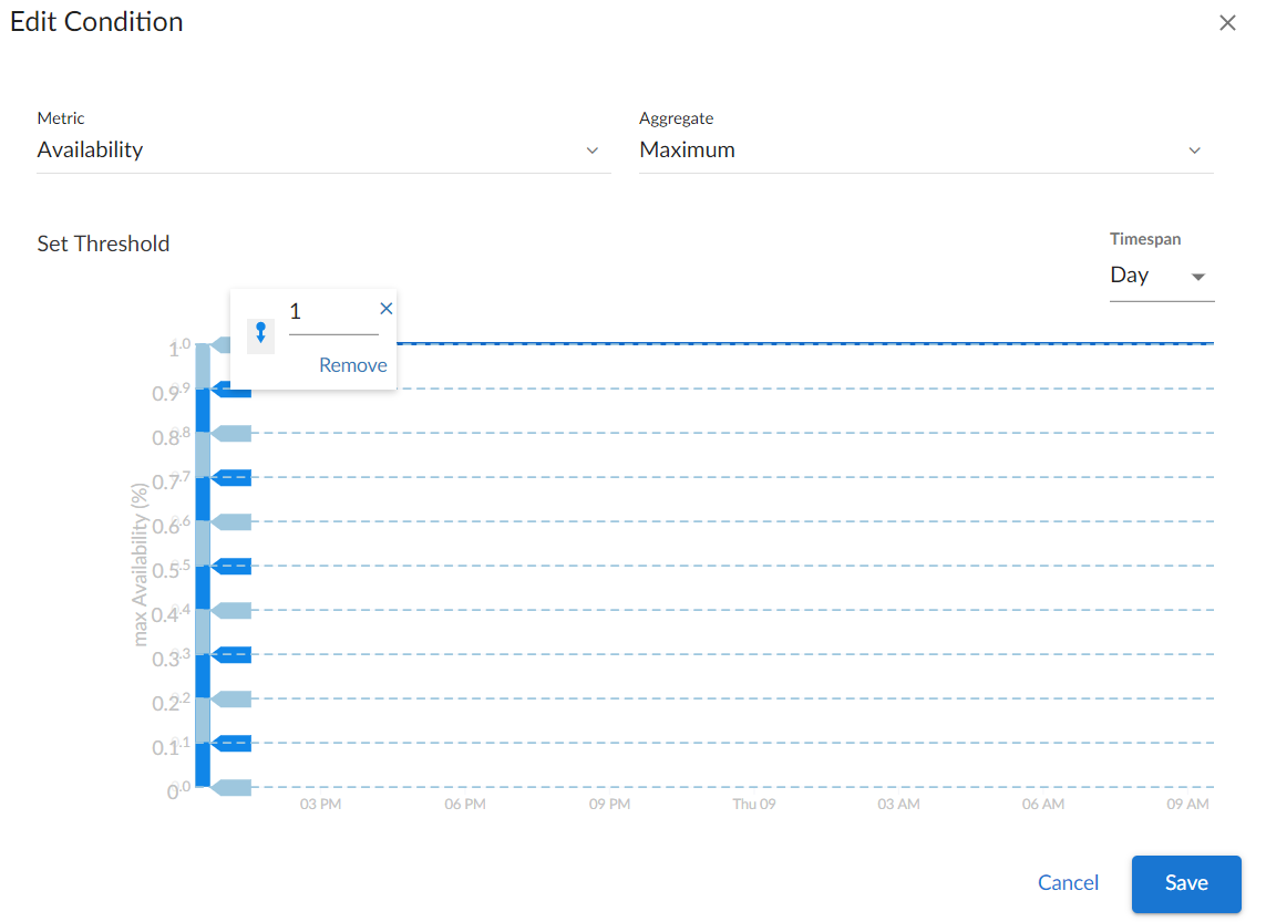 To update the thresholds on this tab, click the Edit button, select which thresholds should generate an alert message, and then click Save.