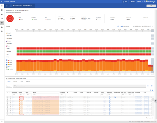 • Events . An interactive pane that displays the Events, Changes, RCA (Root Cause Analysis), and Skylar AI related to the service you have selected.