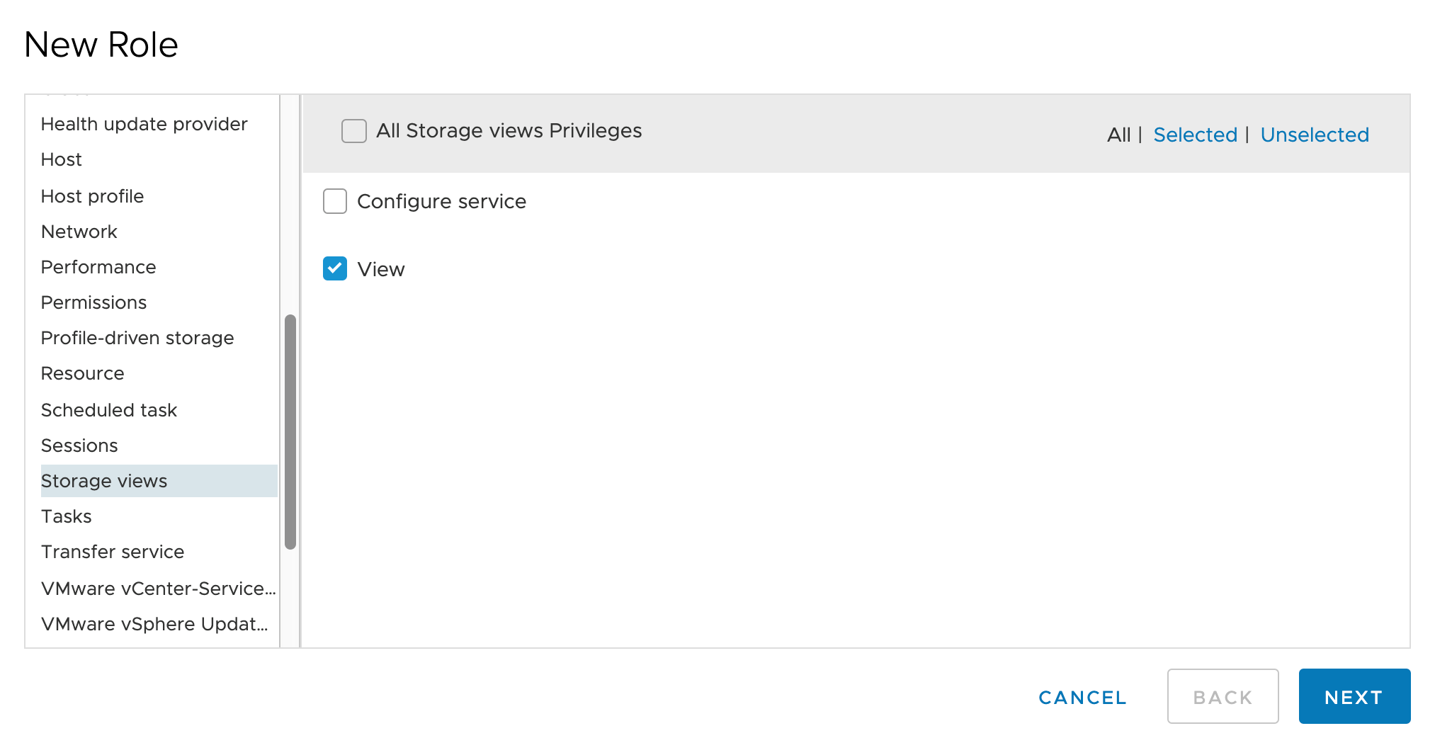 - In the pane on the left, select Storage views and select the View checkbox. Click .