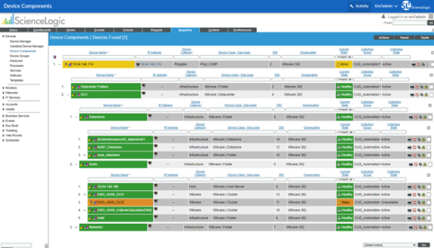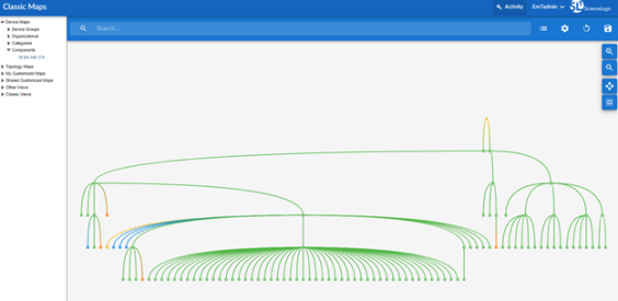 • The Component Map page (Classic Maps > Device Maps > Components) allows you to view devices by root node and view the relationships between root nodes, parent components, and child components in a map. This makes it easy to visualize and manage root nodes and their components. Skylar One automatically updates the Component Map as new component devices are discovered. The platform also updates each map with the latest status and event information. To view the map for a vCenter server, go to the Component Map page and select the map from the list in the left NavBar. To learn more about the Component Map page, see the section on Maps.