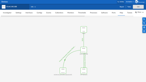 • The Device Investigator Map page (click Map in the Device Investigator page) displays a map of a particular device and all of the devices with which it has parent-child relationships. Double-clicking any of the listed devices reloads the page to make the selected device the primary device.