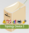 - Category. The device icon displays the device name and the icon associated with the device category for the device. The device icon also includes additional icons that allow you to view events on the device, create a ticket about the device, view the Device Summary page, print a report about the device, or view the Device Properties page.