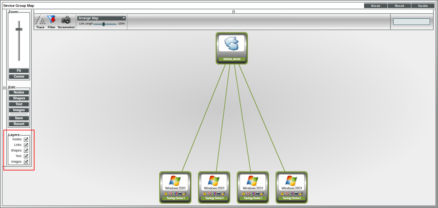 NOTE: You can also customize Layer-2 maps, CDP maps, LLDP maps and Layer 3-maps by creating, editing and deleting links. To learn more about links, see Topology Maps.