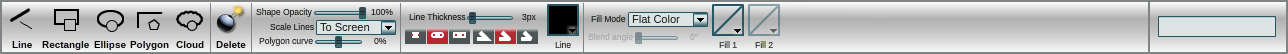 - Flat Color. Shape is filled with a single color, specified in Fill 1.