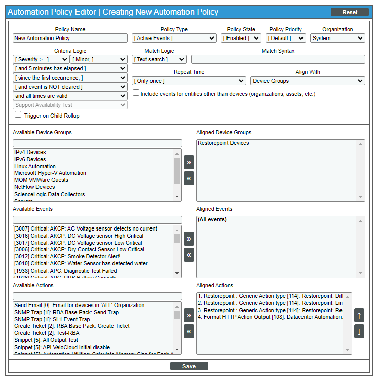 To create an automation policy that uses the automation actions in the "Restorepoint Automation" PowerPack, perform the following steps: