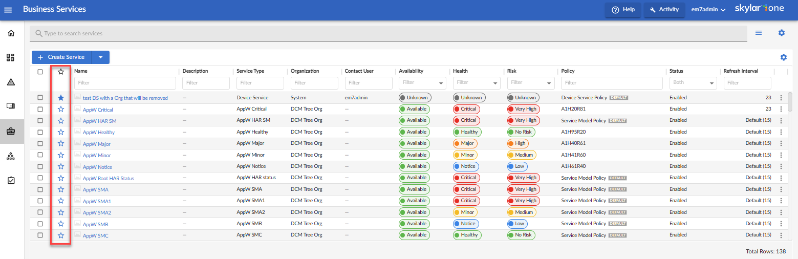 This section describes how to use Skylar One (formerly SL1) to create and manage business services for your company. Business services let you gauge the availability, health, and risk of your services and the devices that provide those services.
