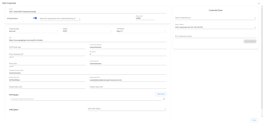 1. Locate the GCP: SOAP Credential Example and then click its wrench icon (). The Edit SOAP/XML Credential modal page appears.
