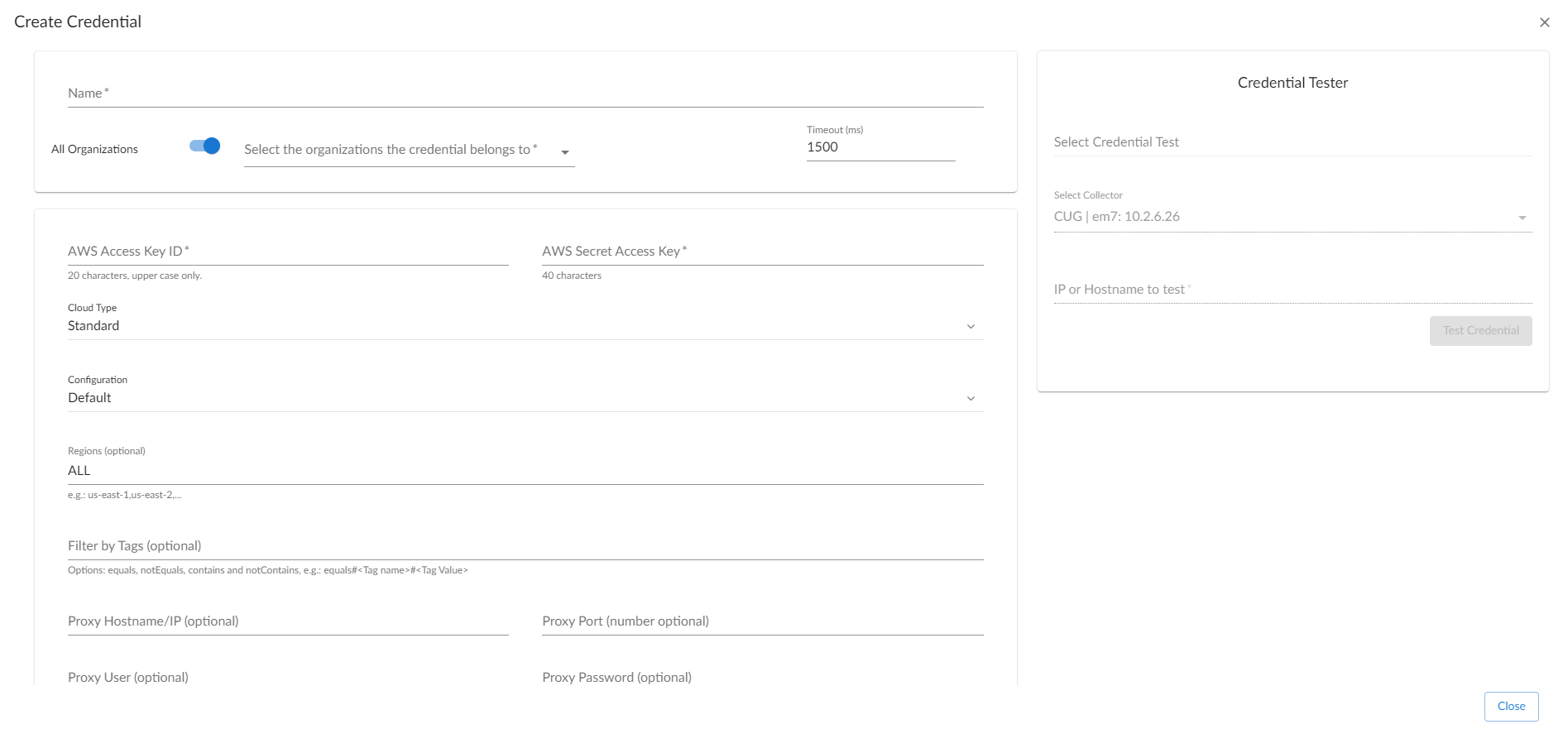 - IP Address/Hostname. For commercial AWS type organizations.us-east-1.amazonaws.com. For GOVCloud type organizations.us-gov-west-1.amazonaws.com.