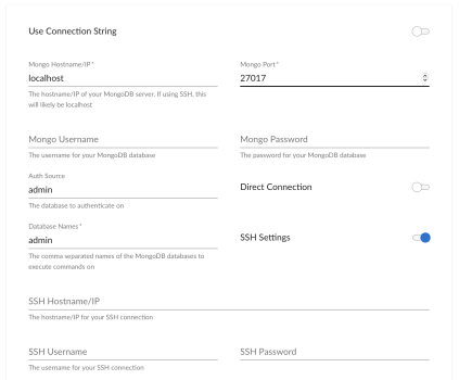 Complete the Mongo Port, Mongo Username, and Mongo Password fields.