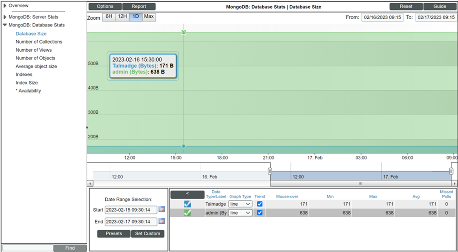 Average Object Size Database Name Database Size Index Size Indexes Number of Collections Number of Objects Number of Views |