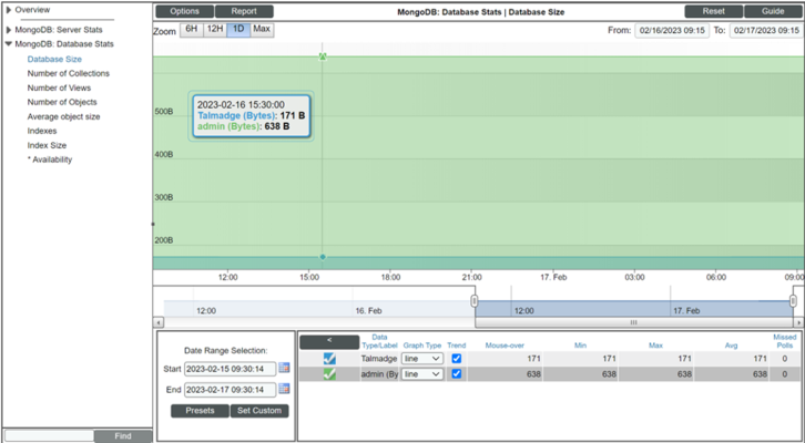 This Dynamic Application collects MongoDB Database statistical information. "MongoDB: Database Stats" graphs output for every database listed in the credential's "Database Names" field. It collects information on multiple instances.