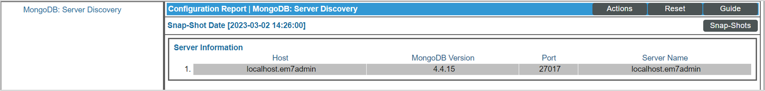 This Dynamic Application is a configuration report that shows Server Information, Replica Set Members, Replica Set Information, and Database names.