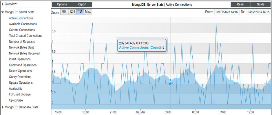 Active Connections Availability Available Connections Command Operations Current Connections Delete Operations FS Total Size FS Used Size Insert Operations Network Bytes Received |