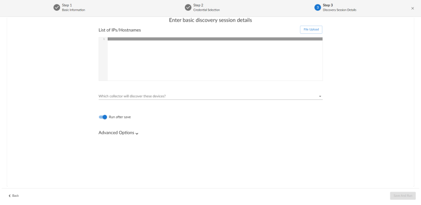 • Run after save. Select this option to run this discovery session as soon as you save the session.