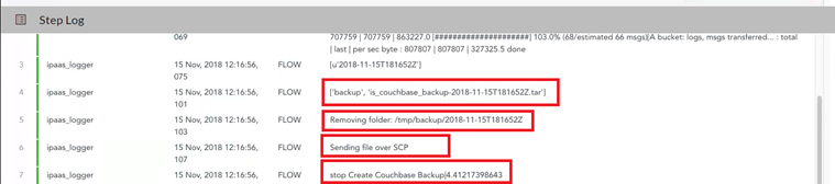 - To ensure that the backup was created, select the "Create IS Backup" step and open the Step Log section.
