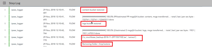 To ensure that the backup was restored, click to open the Step Log section and look for entries related to restoring the backup: