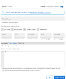 In the Schedule Creator pane, complete the following fields for the default Frequency setting: