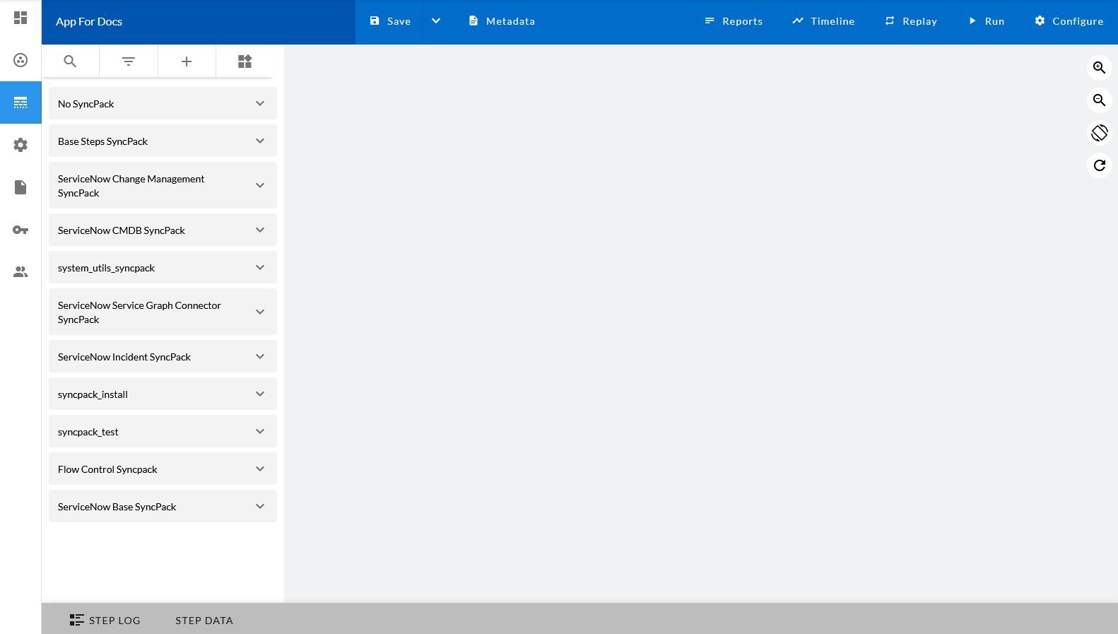 ) on a step in the Steps Registry pane to view more information about that step, including the step ID, the SyncPack for that step, the version, and creator of the step. You can also click to edit the code for that step, and if the step does not belong to a published SyncPack, you can also delete that step from the registry.