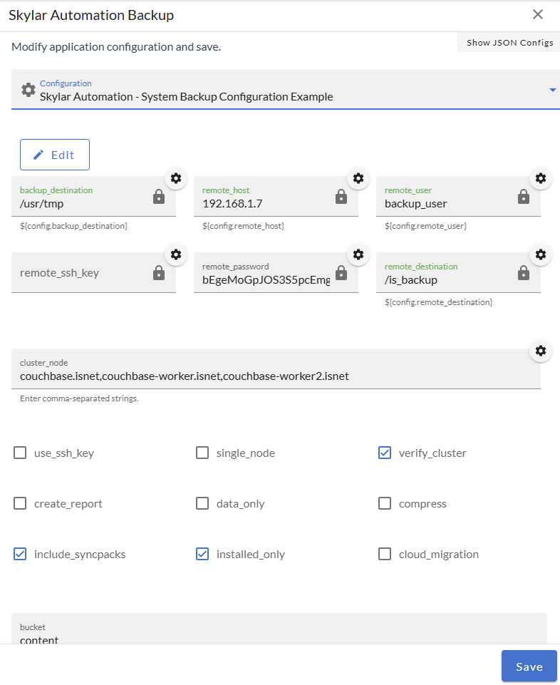 Configuration. Select the same configuration object you aligned with the "Skylar Automation Backup" application. Required.