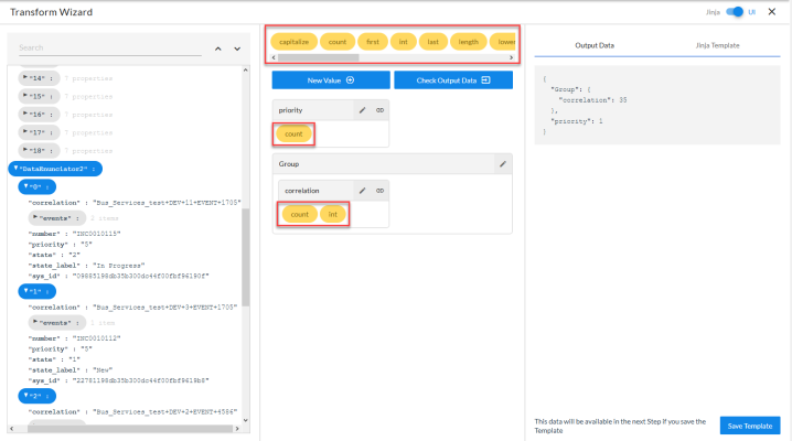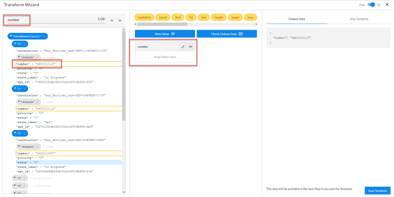 - . Displays the JSON data that was generated by the selected step.