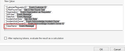 Type the value after the new key, such as "ClassName":"Event.Message":