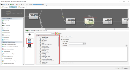 On the One-Step Editor page, select the "Create a new Incident" step and click the Fields tab: