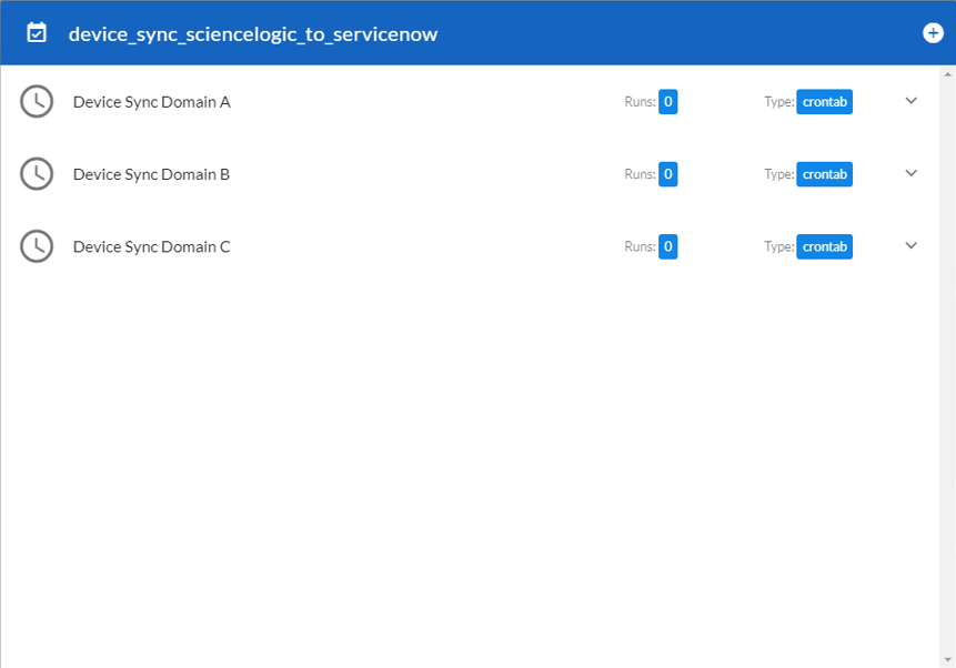 The following image shows how you could schedule Device Syncs for multiple ServiceNow domains: