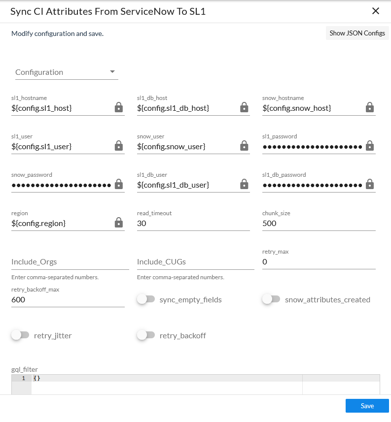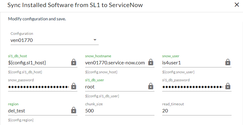 - snow_request_limit. Specify the number of CIs fetched from ServiceNow in each request. The default is 500 objects per chunk.