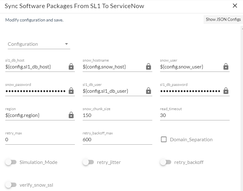 - verify_snow_ssl. Toggle on (blue) this option to enable verification of the SSL certification when you run this application.