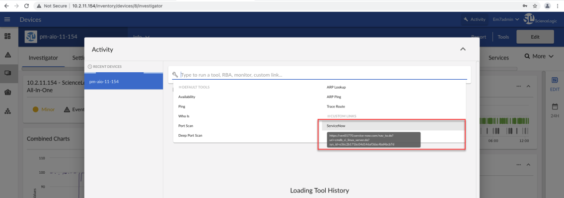 When that application completes, go to the Applications page and run the "Sync Devices from Skylar One to ServiceNow" application to sync devices and their properties and relationships from Skylar One to ServiceNow.