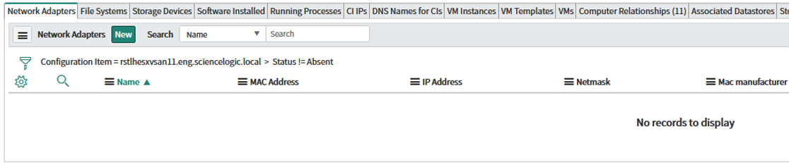 When the application completes, go to ServiceNow and type "cmdb_ci_network_adapter.list". The Network Adapters page appears with a list of synced interfaces.
