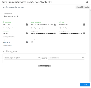 attribute_map. In this section, click if you want to create a mapping for any other asset fields that you want to sync between Skylar One (the first column) and ServiceNow (the second column).