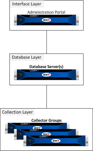 A diagram showing the relationship between the optional interface layer, the database layer including disaster recovery, and the collection layer
