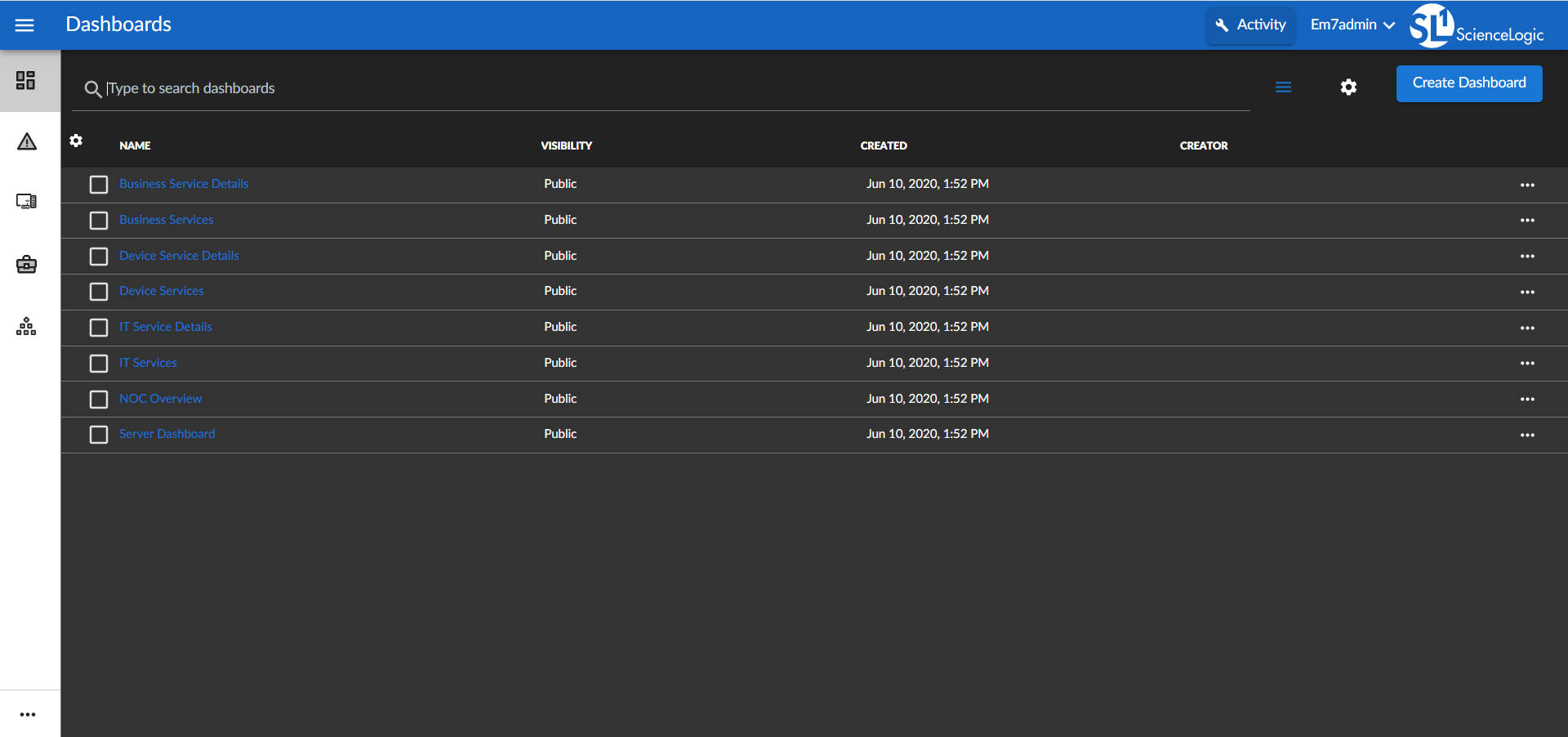 Skylar One includes one System Default theme, but you can completely customize the look and feel of your Skylar One system by creating new themes. For example, you could create a theme that replaces the Skylar One logo with your company's logo and updates the colors used in the user interface to match those used in your company's branding. You can also choose between a light theme or a dark theme for the user interface.