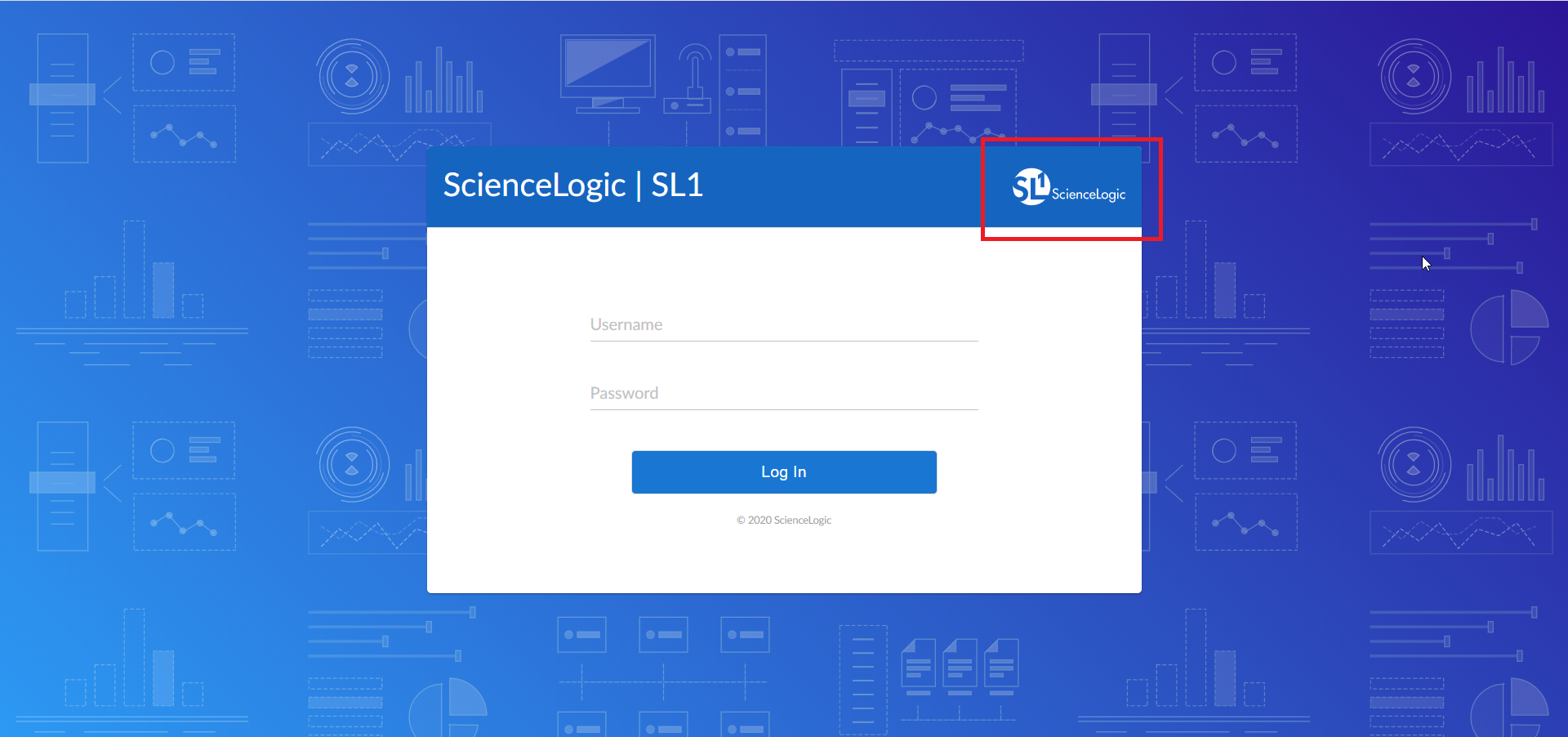 The default theme is reflected on the login page as well as the main Skylar One user interface.
