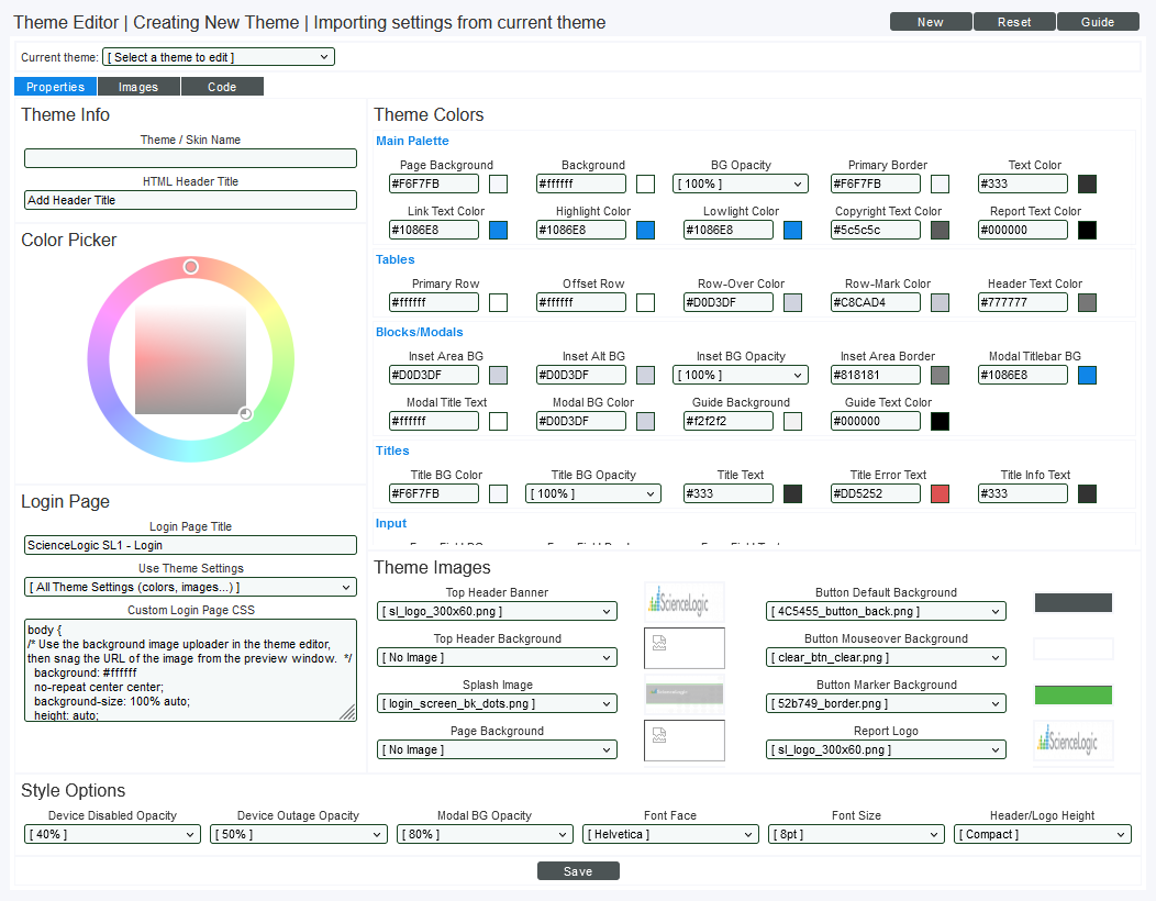 - Select the button to save your changes. When each affected user next logs in, Skylar One will load the changed theme.
