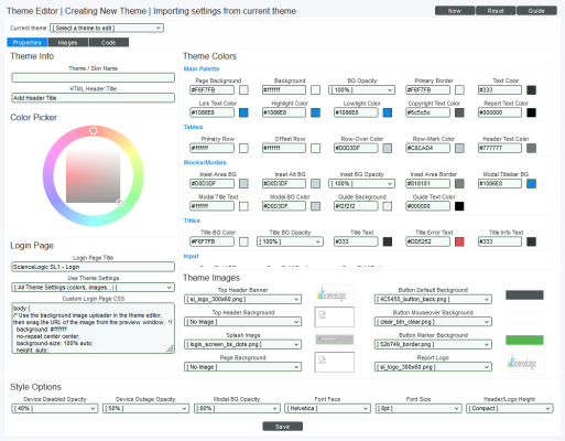 - Select the button to save any changes to the theme. If you are currently using the theme, your changes will be applied immediately after you select the button. Other users who use the theme will see the changes the next time they log in to Skylar One.