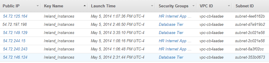 The AWS Management Console does not always make it clear where the user is deploying instances . For example, Subnets and VPCs are often identified only by hexadecimal identifiers, e.g. "subnet-4ee6162b", instead of human-readable names: