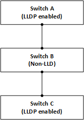 - Because switch B is not LLDP-enabled, the broadcast messages from switch A will reach switch C. Therefore, switch C will report that it is directly connected to switch A.