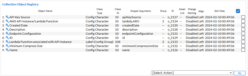 • In the Collection Object Registry pane at the bottom of the page, locate the collection object(s) you want to perform the action on. Select the checkbox for each collection object you want to perform the action on.
