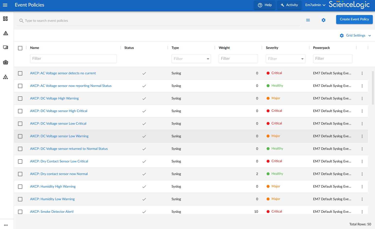 Skylar One includes pre-defined events for the most commonly encountered conditions on the most common platforms. Skylar One allows you to customize these events and also to define new events. You do this in the Event Policies page.