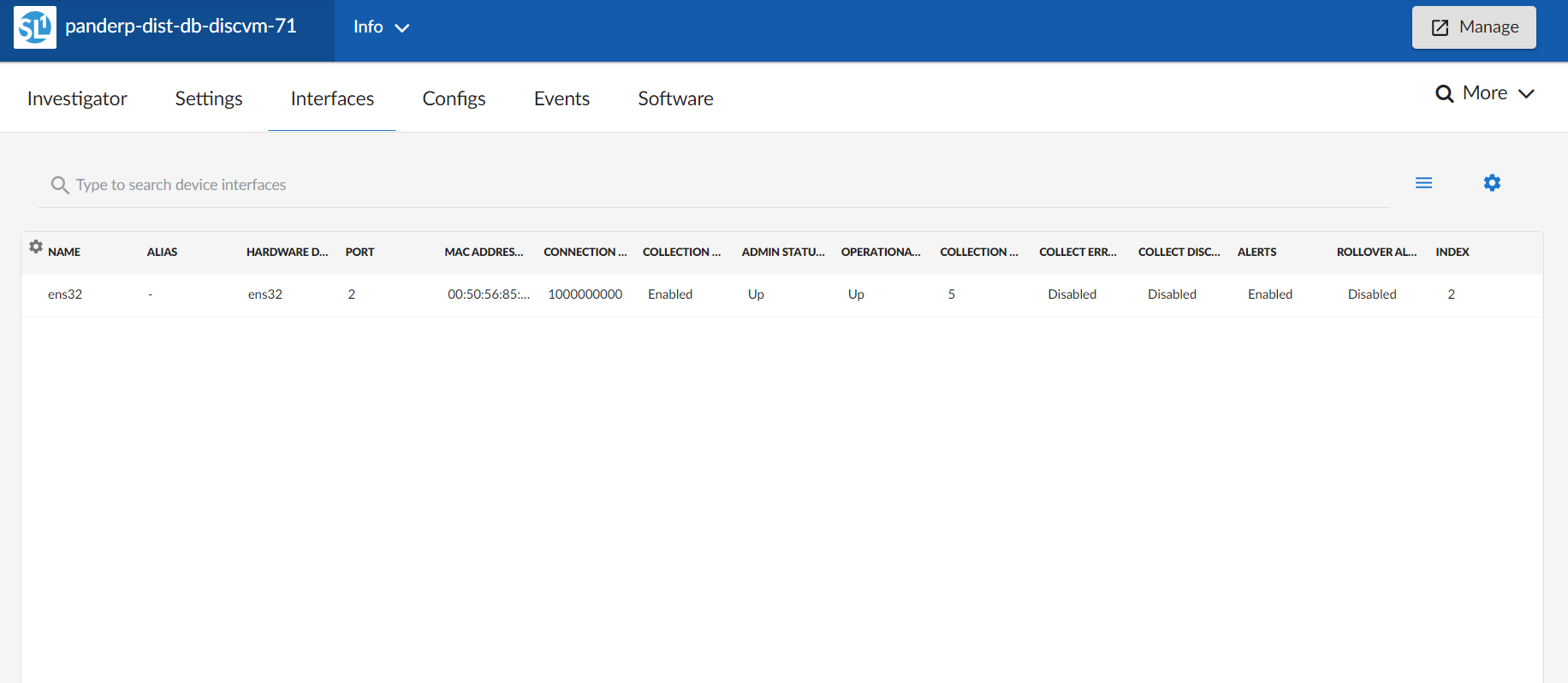 The Interfaces tab of the Device Investigator page