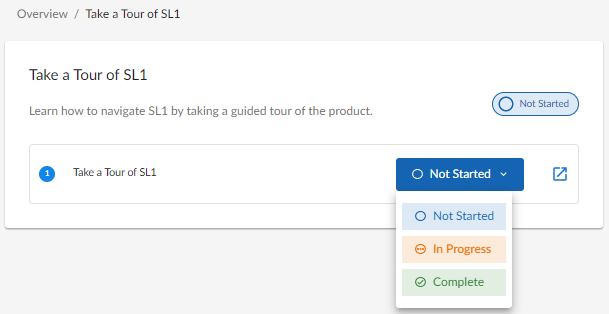 1. In the Get Started section, click the arrow () button next to the status in the Take a Tour of Skylar One journey card.