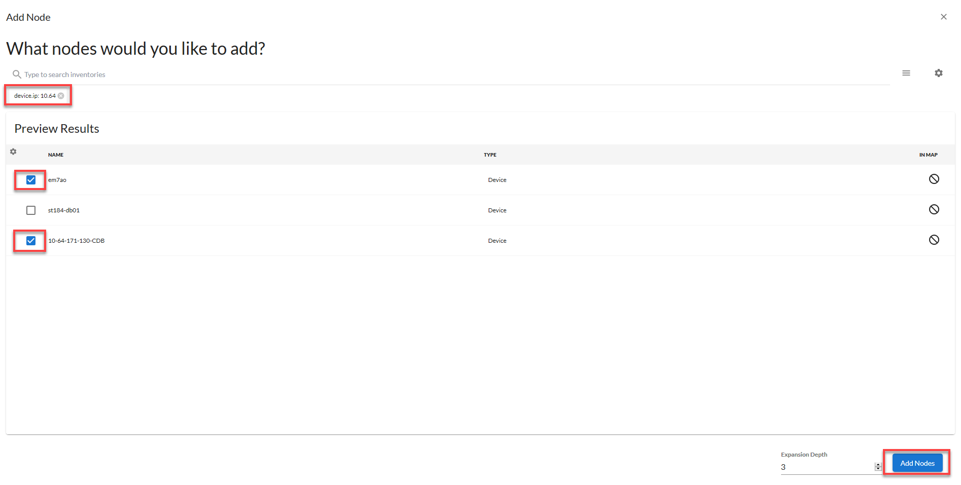 5. Click Add Nodes. The node or nodes are added to the Map window.