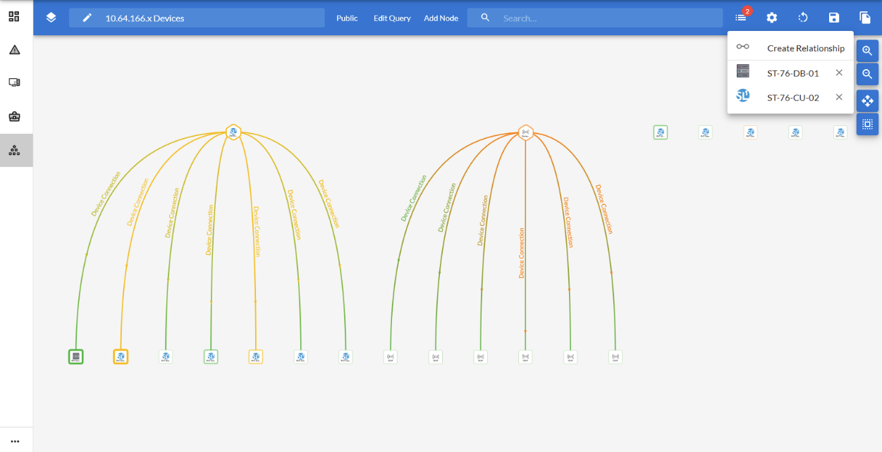 You can create a link between any two devices in a map to represent a new relationship. After you create a relationship, you can decide if the relationship will only exist in that map, or if that relationship will persist on all maps in Skylar One after you save the map.